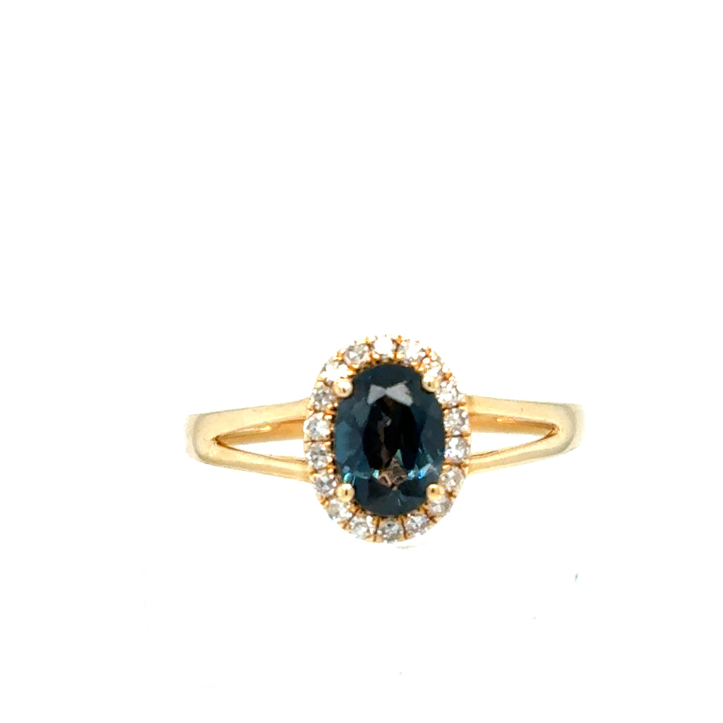 < Back To Anniversary Gifts Blue Topaz Fashion Ring with Diamond Halo 14kt yellow gold fashion ring containing a .88ctw garnet center stone approximately 7mmx5mm with surrounding 18 diamond halo, total .14ctw, quality approximately SI2, color H. SKU: CR0195 Default Title - $ 520.00 USD Suggested Retail Price: $1,405.02 Klass Jewelers Price! $520.00 Add To Shopping Bag Share: