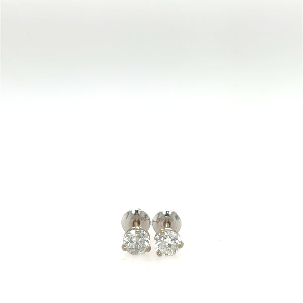 14kt white gold diamond stud earrings containing 2 round full cut diamonds having a combined total weight of approximately 1.40ctw, clarity grade approximately SI3, color grade approximately G, set in 3 prong mountings with screw back posts and backs for pierced ears.