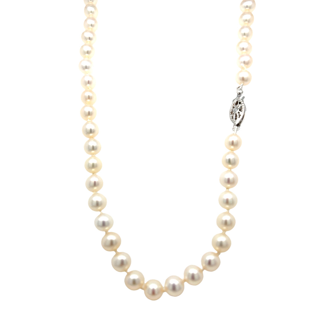 < Back To Anniversary Gifts Pearl Necklace 20-inch Akoya cultured pearl necklace, pearl quality AA, also containing a 14kt white gold clasp. SKU: EO0118 Default Title - $ 1,450.00 USD Suggested Retail Price: $3,961.06 Klass Jewelers Price! $1,450.00 Add To Shopping Bag Share: