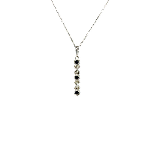 < Back To Anniversary Gifts Sapphire and Diamond Bar Pendant Necklace 10kt white gold bar pendant containing 3 round sapphires and 4 round diamonds set in heart shaped setting, total approximately .10ctw, clarity SI1, color G-H on a white gold 17in cable chain. SKU: CP0180 Default Title - $ 385.00 USD Suggested Retail Price: $1,035.01 Klass Jewelers Price! $385.00 Add To Shopping Bag Share: