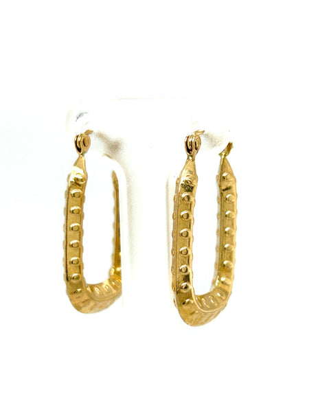 < Back To Anniversary Gifts Textured Rectangular Gold Hoop Earrings 10kt yellow gold rectangular polished and textured hoop earrings. SKU: GE0053 Default Title - $ 180.00 USD Suggested Retail Price: $0.00 Klass Jewelers Price! $180.00 Add To Shopping Bag Share: