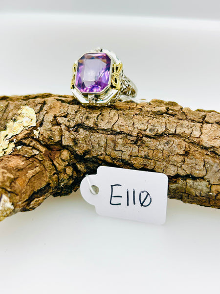 < Back To Estate Jewelry Amethyst Fashion Ring 14 kt white gold ring with yellow gold bow shaped accents containing one cushion cut amethyst stone SKU: E110 Default Title - $ 0.01 USD Contact Us for Price 859-525-7500 Contact Us Share: