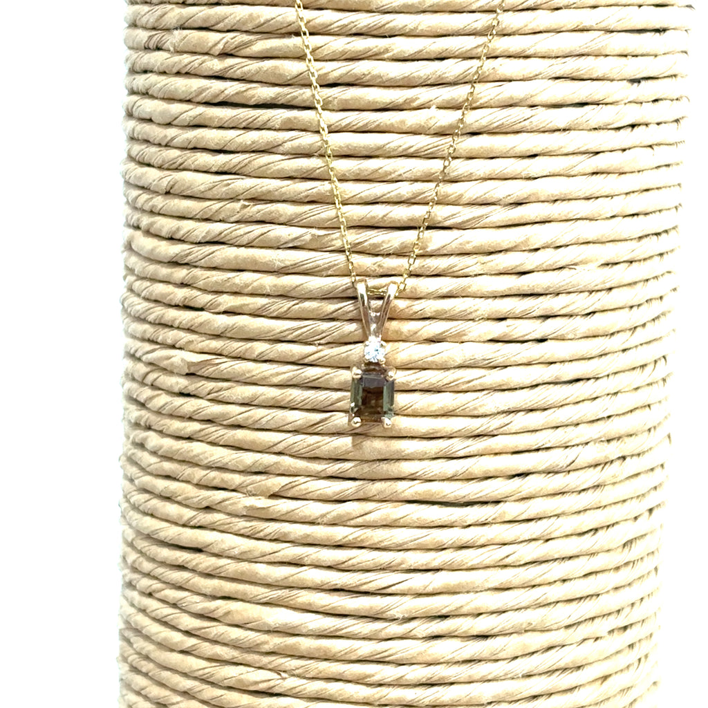 < Back To Estate Jewelry Andralusite and Diamond Pendant and Chain 14KT yellow gold Andralusite pendant containing 1 emerald cut center stone and 1 .03 2mm diamond. Chain is 10kt gold 18 inch cable chain .42mm .7DWT SKU: E283 Default Title - $ 215.00 USD Contact Us for Price 859-525-7500 Contact Us Share: