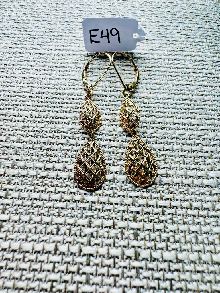 < Back To Estate Jewelry Gold Dangle Earrings 10kt yellow gold dangle earrings SKU: E49 Default Title - $ 0.01 USD Contact Us for Price 859-525-7500 Contact Us Share: