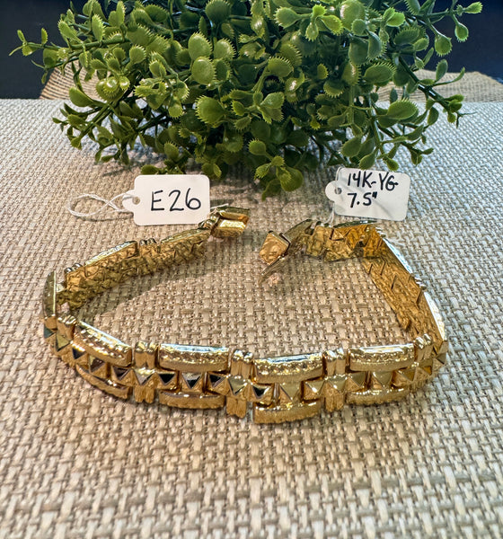< Back To Estate Jewelry Gold Fancy Link Bracelet 14kt yellow gold fancy link bracelet chain. SKU: E26 Default Title - $ 0.01 USD Contact Us for Price 859-525-7500 Contact Us Share: