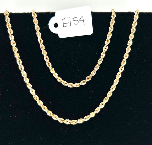 < Back To Estate Jewelry Gold Rope Chain 14kt yellow gold 18" rope chain SKU: E154 Default Title - $ 0.01 USD Contact Us for Price 859-525-7500 Contact Us Share:
