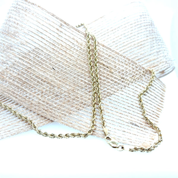 < Back To Estate Jewelry Gold Rope Chain 10kt yellow gold rope chain. 2.4mm, 20 inches, 1.7dwt SKU: E292 Default Title - $ 0.01 USD Contact Us for Price 859-525-7500 Contact Us Share:
