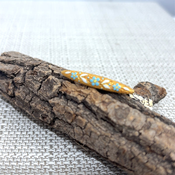 < Back To Estate Jewelry Yellow Gold Bar Pin 14kt yellow gold bar pin. Light blue enamel flowers and white enamel leaves on a brushed gold pin. 1.25" in length SKU: E256 Default Title - $ 0.01 USD Contact Us for Price 859-525-7500 Contact Us Share: