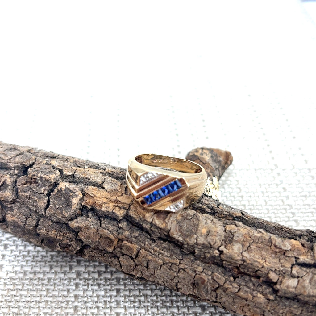 < Back To Estate Jewelry Yellow Gold Men's Sapphire and Diamond Ring 10kt yellow gold men's sapphire and diamond fashion ring. 4 sapphires set in a diagonal channel. 2 diamonds .02 SI1 SKU: E251 Default Title - $ 0.01 USD Contact Us for Price 859-525-7500 Contact Us Share:
