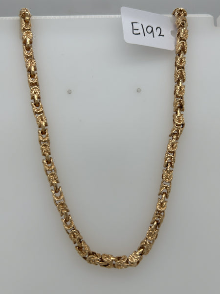 < Back To Gifts Under $1500 Byzantine Style Gold Chain 14kt yellow gold 30" byzantine style chain, 4mm wide with barrel clasp. SKU: E192 Default Title - $ 0.01 USD Contact Us for Price 859-525-7500 Contact Us Share:
