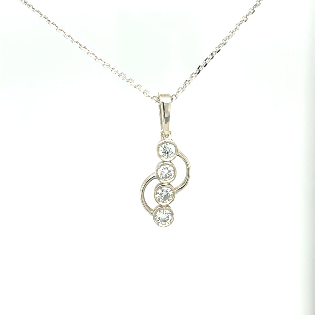 < Back To Shop Necklaces Curved Gold Diamond Pendant 14kt white gold pendant with curved accents containing a row of 4 round diamonds total approximately .24ctw, quality approximately VS2, color approximately G. Chain sold separately. SKU: DP0241 Default Title - $ 1,600.00 USD Suggested Retail Price: $4,320.06 Klass Jewelers Price! $1,600.00 Add To Shopping Bag Share: