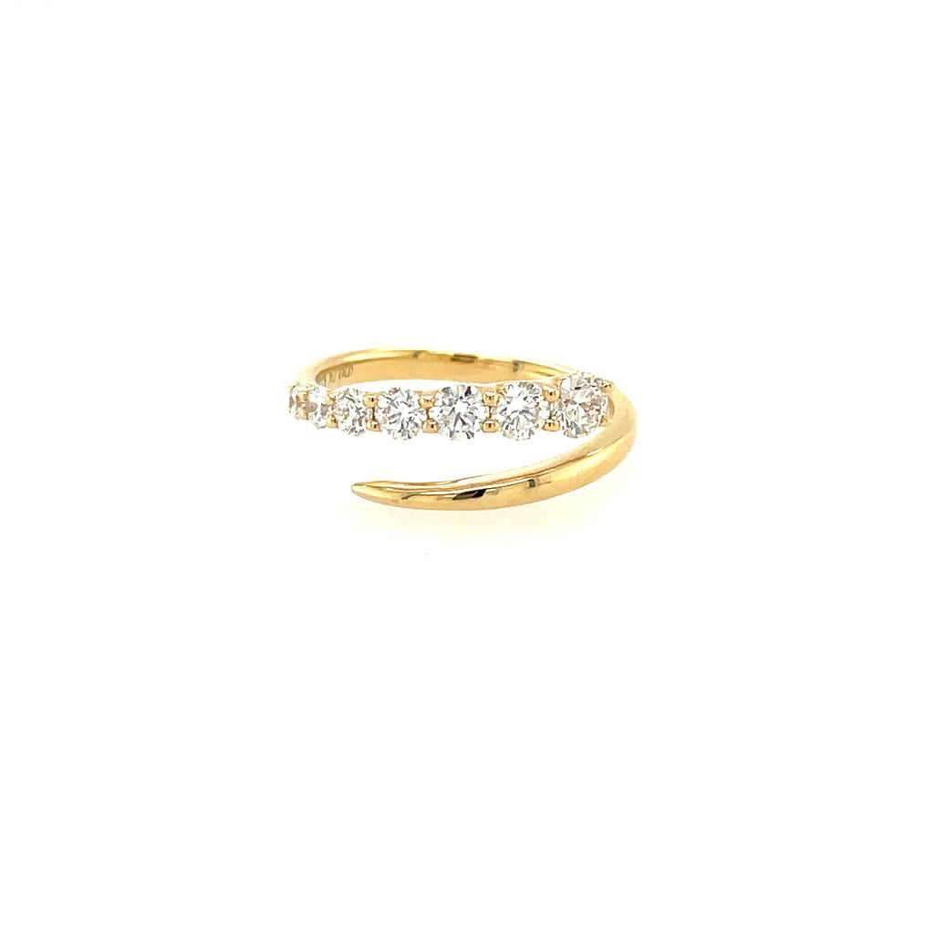 < Back To Shop Rings Diamond Bypass Ring .70ctw 14kt yellow gold diamond bypass style ring containing 7 round diamonds equaling approximately .70ctw, clarity grade approximately VS2, color grade approximately G-H. SKU: DR0151 Default Title - $ 3,445.00 USD Suggested Retail Price: $9,302.13 Klass Jewelers Price! $3,445.00 Add To Shopping Bag Share:
