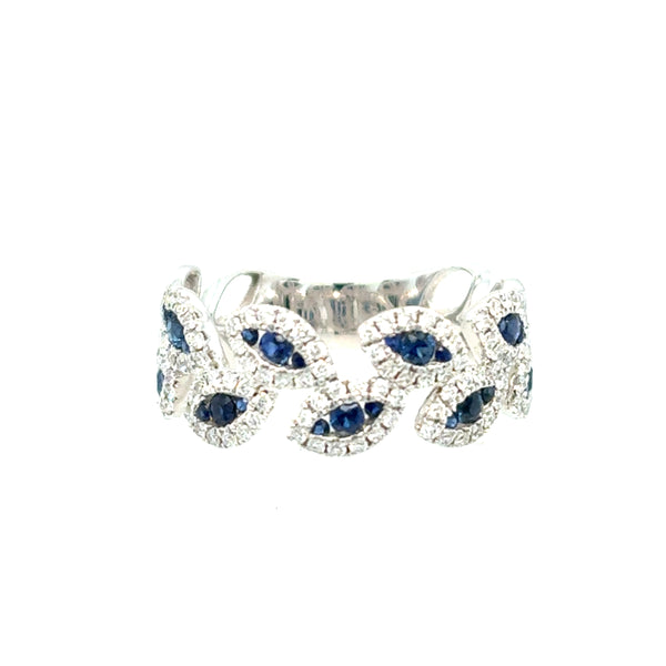 < Back To Shop Rings Sapphire & Diamond Leaf Pattern Fashion Ring 18kt white gold ring containing 27 round sapphires total approximately .40ctw surrounded by leaf shaped halos of 105 diamonds total approximately .40ctw. SKU: CR0188 Default Title - $ 3,475.00 USD Suggested Retail Price: $9,383.13 Klass Jewelers Price! $3,475.00 Add To Shopping Bag Share: