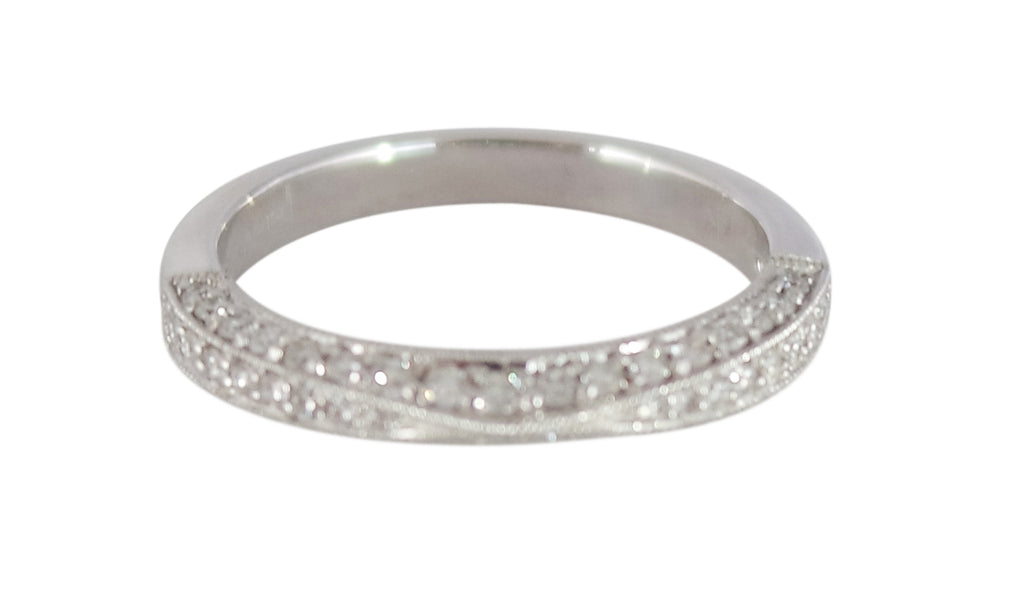 < Back To Wedding Rings Diamond Wedding Ring .37ctw 18kt white gold vintage style diamond wedding ring containing 50 round diamonds equaling .37ctw. Match to ER0149. SKU: WR0082 Default Title - $ 1,915.00 USD Suggested Retail Price: $5,169.08 Klass Jewelers Price! $1,915.00 Add To Shopping Bag Share: