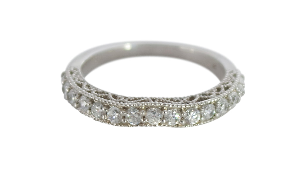 < Back To Wedding Rings Diamond Wedding Ring .45ctw Special order vintage style diamond wedding ring containing 15 round diamonds equaling .45ctw. Available in white, yellow, rose and platinum. 6-8 week order time frame. Match to OM0042. SKU: OM0043 Default Title - $ 2,050.00 USD Suggested Retail Price: $5,530.88 Klass Jewelers Price! $2,050.00 Add To Shopping Bag Share:
