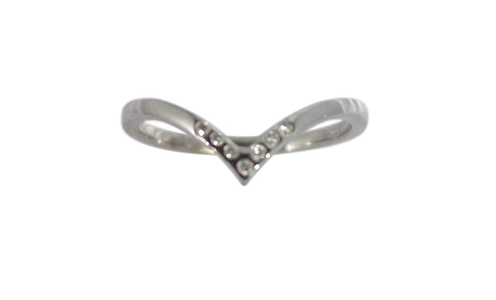 < Back To Wedding Rings V Diamond Wedding Ring .07ctw 14kt white gold V shaped diamond wedding ring containing 7 round diamonds equaling .07ctw. SKU: WR0078 Default Title - $ 1,005.00 USD Suggested Retail Price: $2,710.00 Klass Jewelers Price! $1,005.00 Add To Shopping Bag Share: