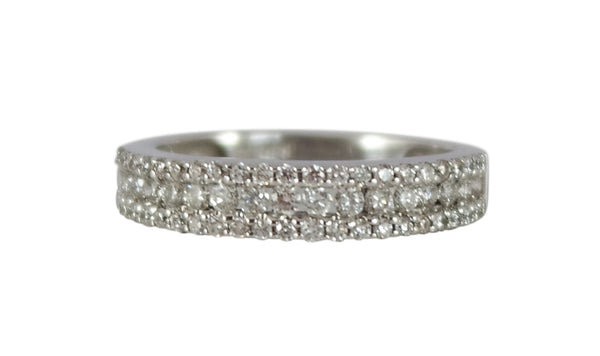 < Back To All Products 3 Row Diamond Wedding Ring 14kt white gold 3 row style diamond wedding ring containing 63 round diamonds equaling .64ctw, 2.0DWT. SKU: WR0013 Default Title - $ 1,709.00 USD Suggested Retail Price: $4,619.00 Klass Jewelers Price! $1,709.00 Add To Shopping Bag Share: