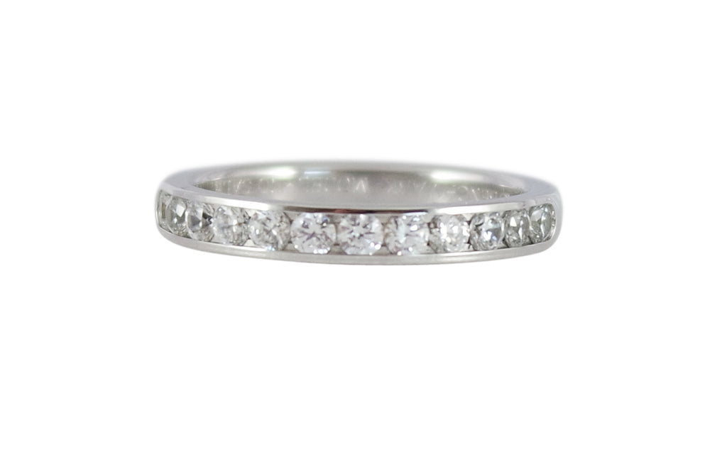 < Back To All Products Channel Set Wedding Ring Special order channel set wedding ring containing 12 round diamonds equaling .48ctw. Available in white, yellow, rose and platinum. 6-8 week order time frame. SKU: BM0001 Default Title - $ 2,050.00 USD Suggested Retail Price: $5,514.00 Klass Jewelers Price! $2,050.00 Add To Shopping Bag Share: