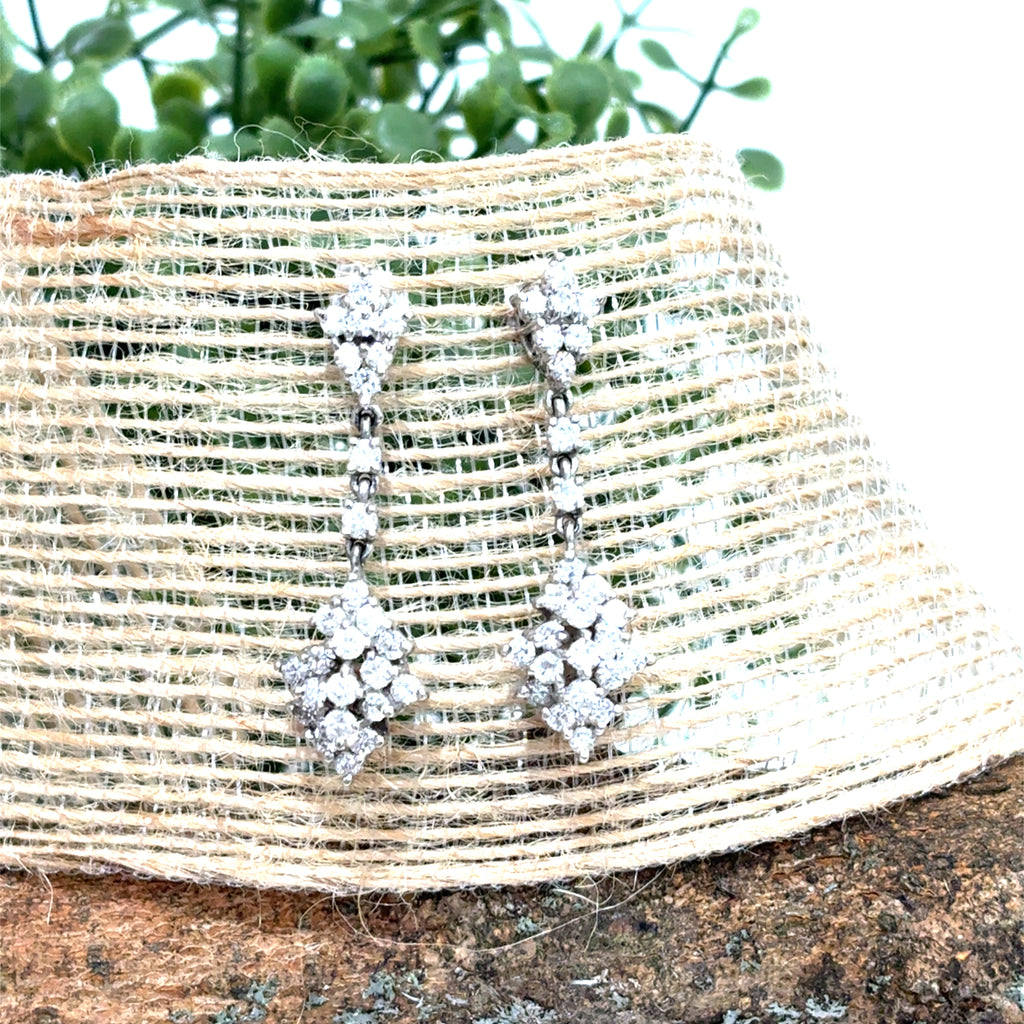 < Back To All Products Diamond Dangle Earrings 14 kt white gold diamond cluster dangle earrings approximately 1 ctw. SKU: E51 Default Title - $ 875.00 USD Suggested Retail Price: $2,375.00 Klass Jewelers Price! $875.00 Add To Shopping Bag Share: