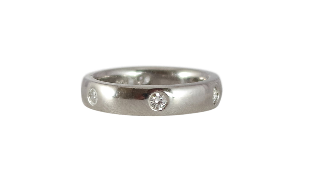 < Back To All Products Diamond Wedding Ring .90ctw Platinum wedding ring containing 6 round burnished set diamonds equaling .90ctw, 6.1DWT. SKU: WR0047 Default Title - $ 2,230.00 USD Suggested Retail Price: $6,020.00 Klass Jewelers Price! $2,230.00 Add To Shopping Bag Share: