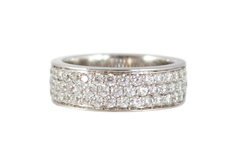 14kt white gold lab grown diamond wedding set, engagement ring contains 4 round lab grown diamonds having a combined total weight of approximately .06ctw, clarity grade approximately VS2, color grade approximately E, wedding ring contains 5 round lab grown diamonds having a combined total weight of approximately .08ctw, clarity grade approximately VS2, color grade approximately E.
